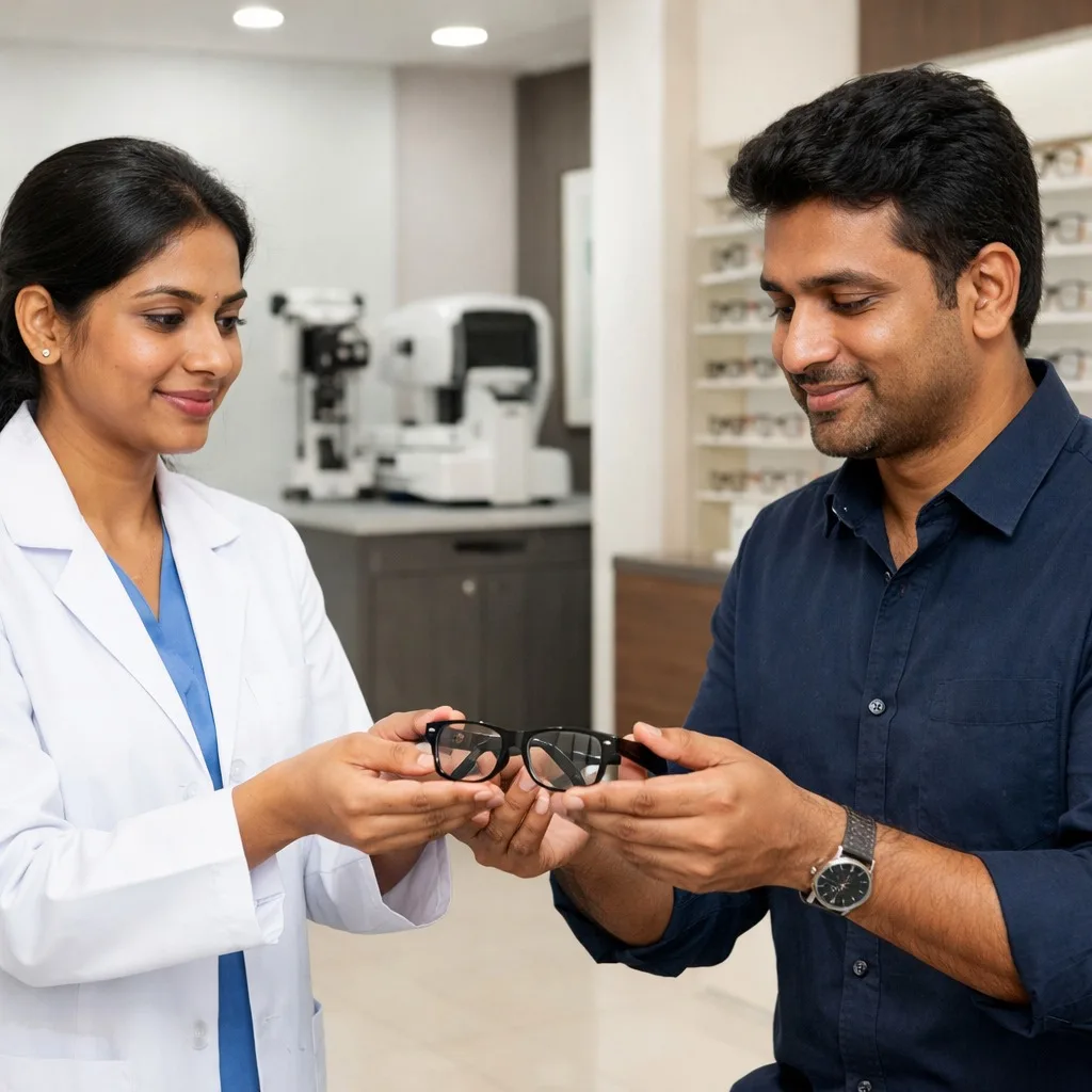 Our in-house optical store offers a wide selection of high-quality spectacles, frames, and lenses. From basic single-vision lenses to advanced progressive and anti-reflective options, we provide solutions that combine clarity, comfort, and style. Digital device users can benefit from blue-light protection lenses that reduce strain and improve visual comfort. Every pair of spectacles is crafted with precision and backed by professional guidance from our optical experts.